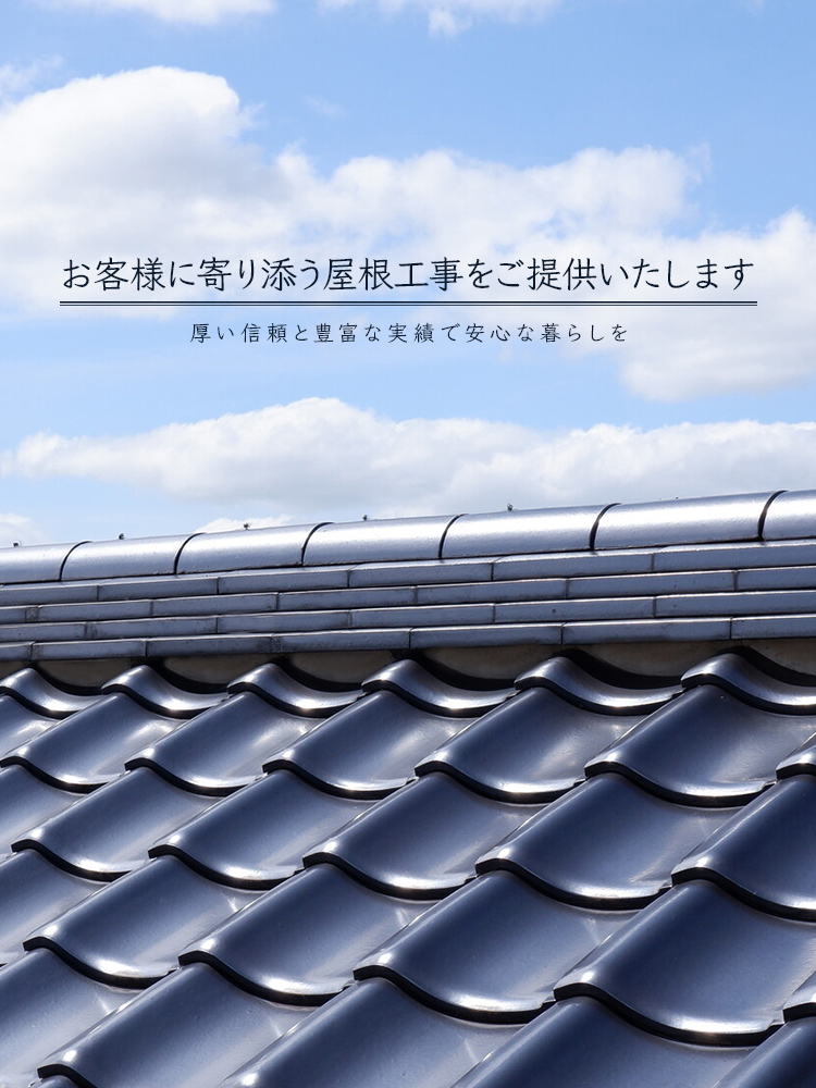 「瓦屋根葺き替え・葺き直し工事」/「板金屋根への葺き替え工事」はもちろん、瓦同士をコーキングで固定するラバーロック(瓦止め施工)や漆喰施工など、屋根に関する施工全般、承っております。
